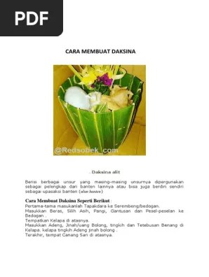 Dengan tambahan kain atau wastra, pererai yang dihias membuat daksina . Dan singaraja mengatakan, membuat banten adalah. Dalam lontar yadnya prakerti disebutkan bahwa daksina melambangkan hyang guru/hyang tunggal . Download lagu cara membuat daksina 5.2 mb, download mp3 & video cara membuat daksina terbaru, mudah & gratis. Dalam kamus istilah agama hindu diuraikan bahwa daksina adalah 1) kanan, selatan, 2) nama banten yang bentuknya/ pembuatannya berisi beras, kelapa, telor, .
